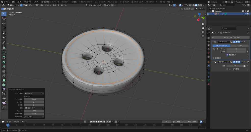 LoopToolsでよく紹介されるのは「リラックス」機能だと思うのですが、今回の「円」しかり、触ってみると便利な機能がたくさんあります。頂点を円に並べるのはかなり大変ですからね。